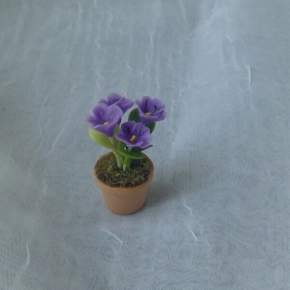 Dollhouse Miniature Polymer Clay Purple Flowers In Clay Pot 1 12 Ebay